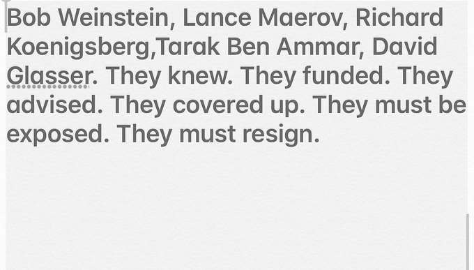 She then explained, "After intense pressure from Weinstein, which included having Matt Damon and Russell Crowe call me directly to vouch for Lombardo and unknown discussions well above my head at the Times, the story was gutted."
